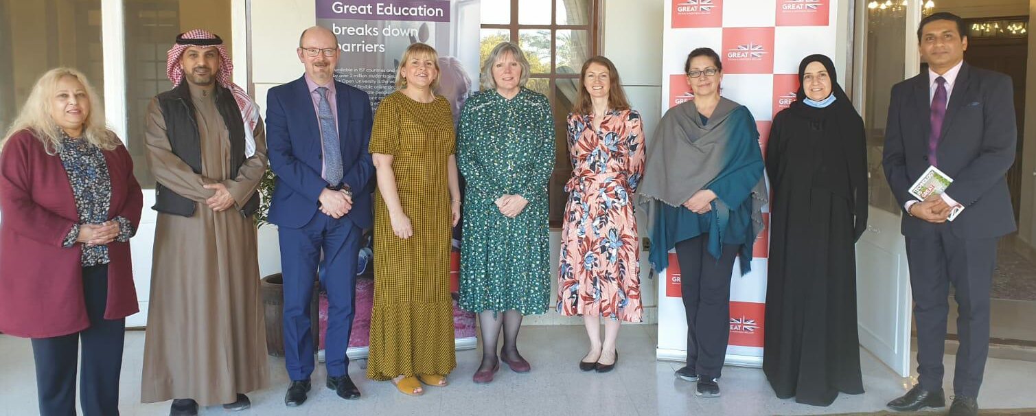 Members of the Derwen College team with staff from Kuwait Society for the Handicapped and the British Embassy Kuwait, meeting Ms Belinda Lewis, who was Her Majesty's Ambassador to the State of Kuwait at the time, to discuss the Gharnata College project.